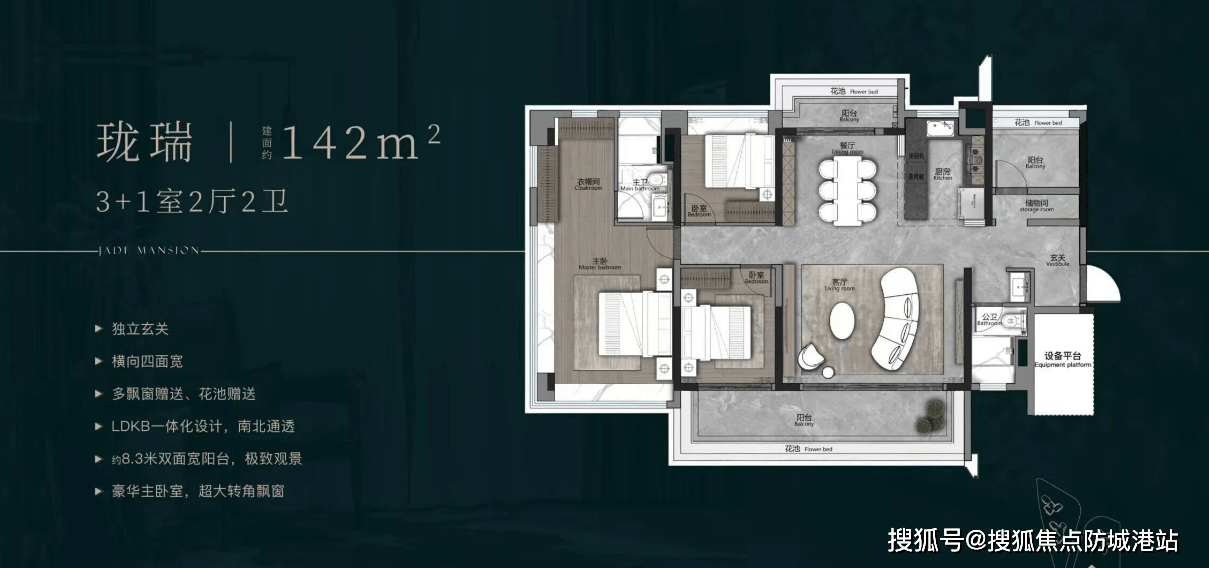 总的来说,142-143㎡四房两厅三卫户型,设计贴心、空间宽敞、舒适度高,双主卧分离布局完美解决了三代同堂的起居干扰问题,而且采光通风优良、视野开阔,是改善家庭、三代同堂家庭的首选户型,也是项目最受欢迎的户型之一。