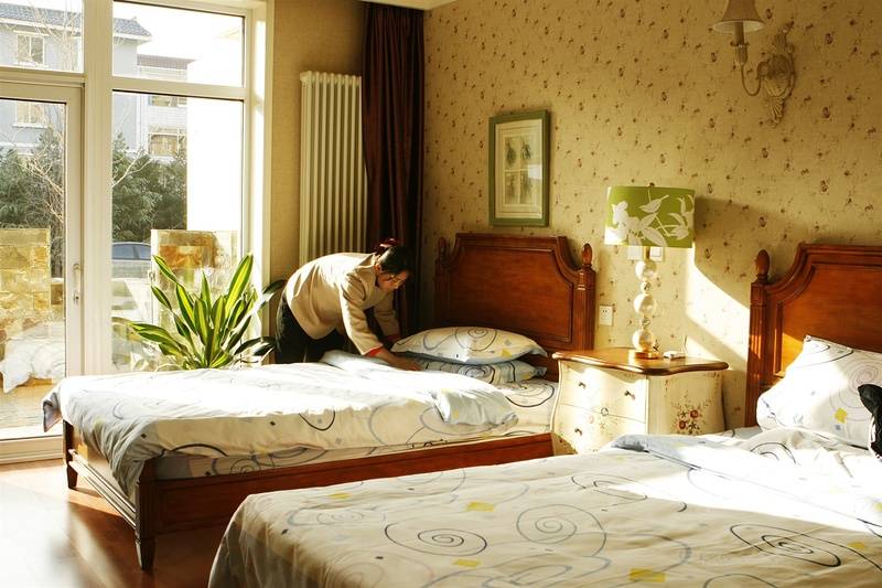 【设施配套】房型丰富多元,含普通间、花园房、家庭房、子女房等,可满足不同居住需求与家庭陪伴需求。居室配备美式古典家具,格调雅致,同时配备钢琴、乒乓球、桌球、沙狐球、门球、电影室、图书馆、健身器材等文娱康体设施,以及洗衣机、微波炉、冰箱、电视、空调、风扇、24小时呼叫系统等生活与安全设施,全方位保障居住品质。