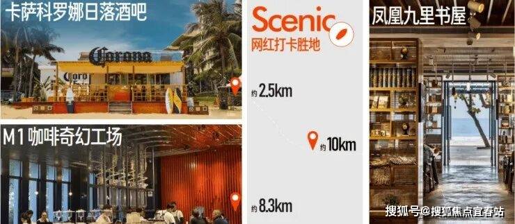 N多网红打卡点 —— 卡萨科罗娜日落酒吧(约2.5km)、M1咖啡奇幻工场(约8.3km)、冲浪俱乐部、书屋等网红娱乐丰盈海上趣味生活。